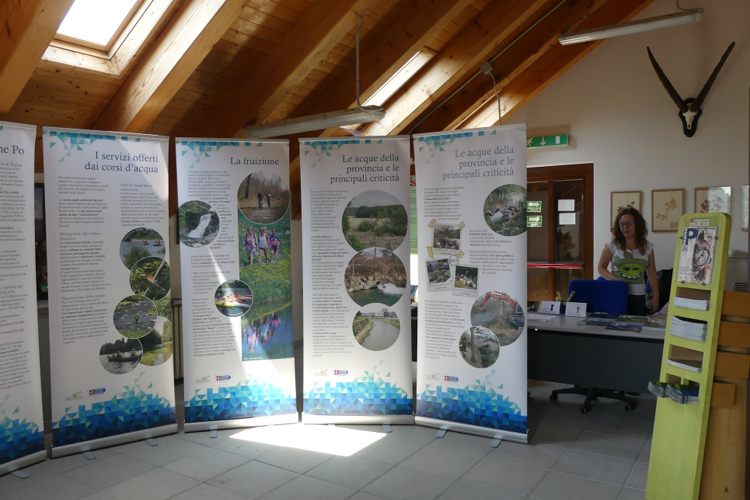 La mostra si compone di 17 roll-up che trattano la tematica delle risorse idriche con riferimento al territorio della provincia di Torino e ai (INSERIRE LINK) Contratti di Fiume e di Lago attivati sul territorio. La mostra è a disposizione a titolo gratuito per gli Enti, associazioni e scuole (la mostra è maggiormente indicata per le scuole medie e superiori) che ne facciano richiesta e che possano garantirne il trasporto e il montaggio/smontaggio. L'allestimento è "modulabile" a seconda delle esigenze del richiedente (tematica specifica da approfondire, area geografica di interesse, spazi a disposizione) e sarà possibile anche in forma parziale. La mostra può inoltre essere abbinata all'esposizione delle fotografie vincitrici e/o in concorso.