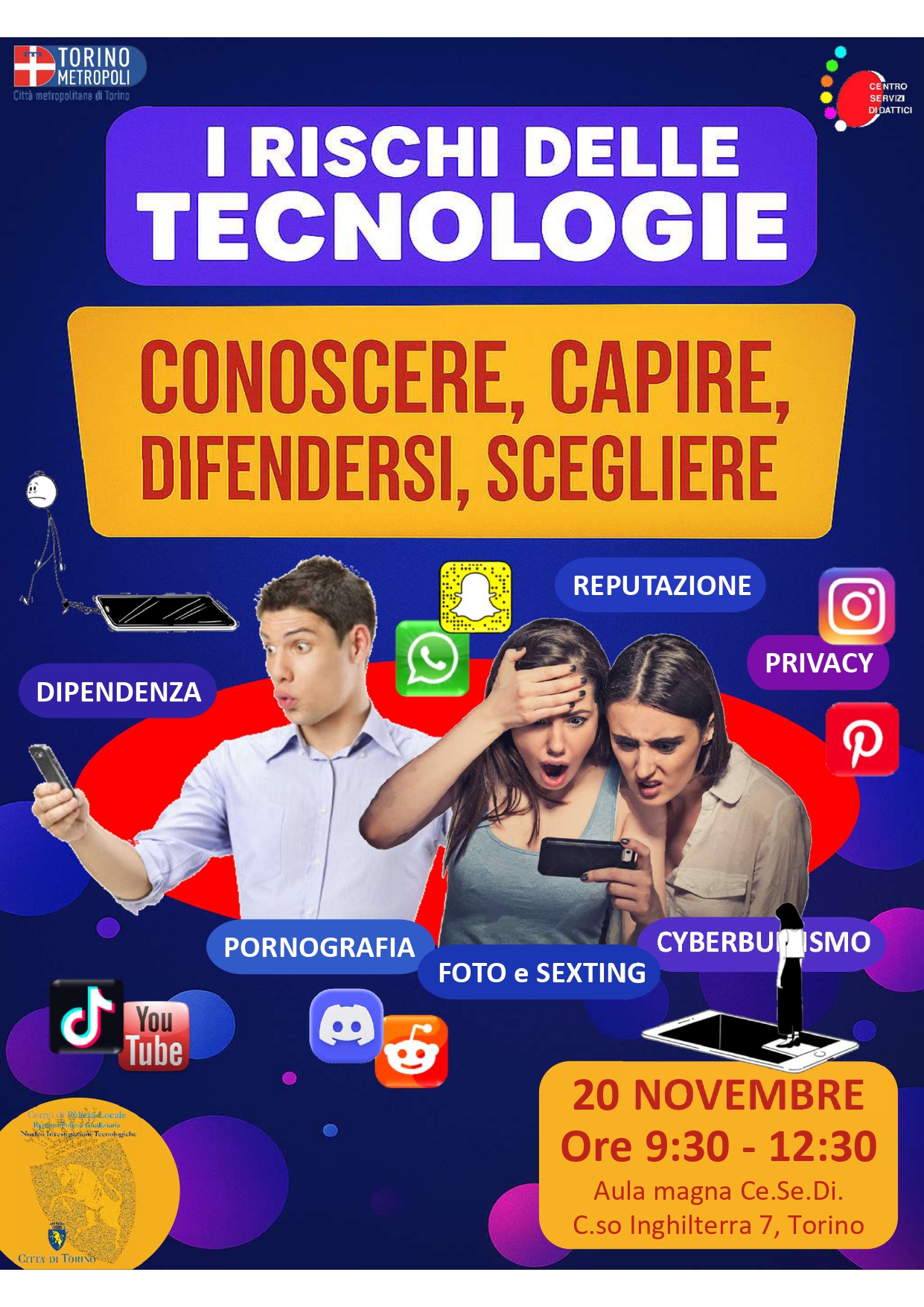 "RISCHI E OPPORTUNITÀ DELLE TECNOLOGIE PER I MINORI: CONOSCERE, CAPIRE, DIFENDERSI, SCEGLIERE" svolta in collaborazione con il Corpo di Polizia Locale della Citta di Torino, Reparto Polizia Giudiziaria - Nucleo Investigazioni. Dott. Marcello Di Lella.
