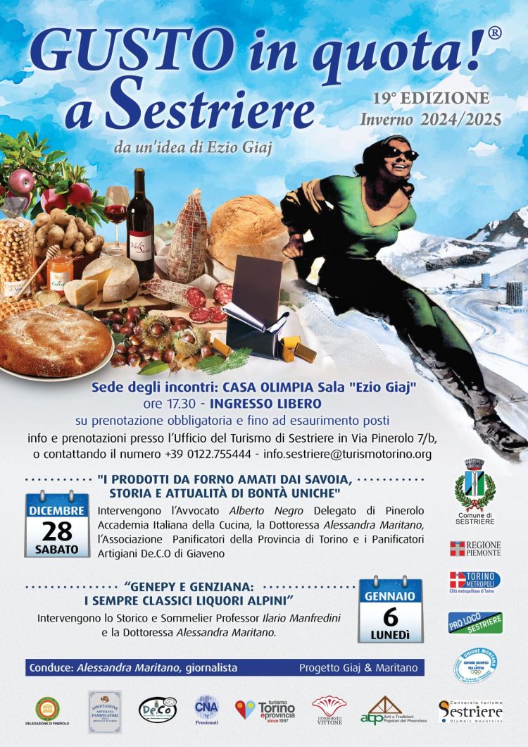 Nelle vacanze natalizie torna nella riaperta Casa Olimpia, l’ex Casa Cantoniera della Città metropolitana di Torinoa Sestriere, l’appuntamento con Gusto in Quota, una rassegna delle eccellenze enogastronomiche del territorio da sempre sostenuta e patrocinata dalla Città metropolitana. L’iniziativa è organizzata dal Consorzio Vittone di Pinerolo con il coinvolgimento di associazioni e numerosi patrocini tra cui quello di Turismo Torino e provincia, nel solco fecondo tracciato dal compianto Ezio Giaj, ideatore, organizzatore e conduttore della rassegna, oggi curata nel segno della continuità da Alessandra Maritano.