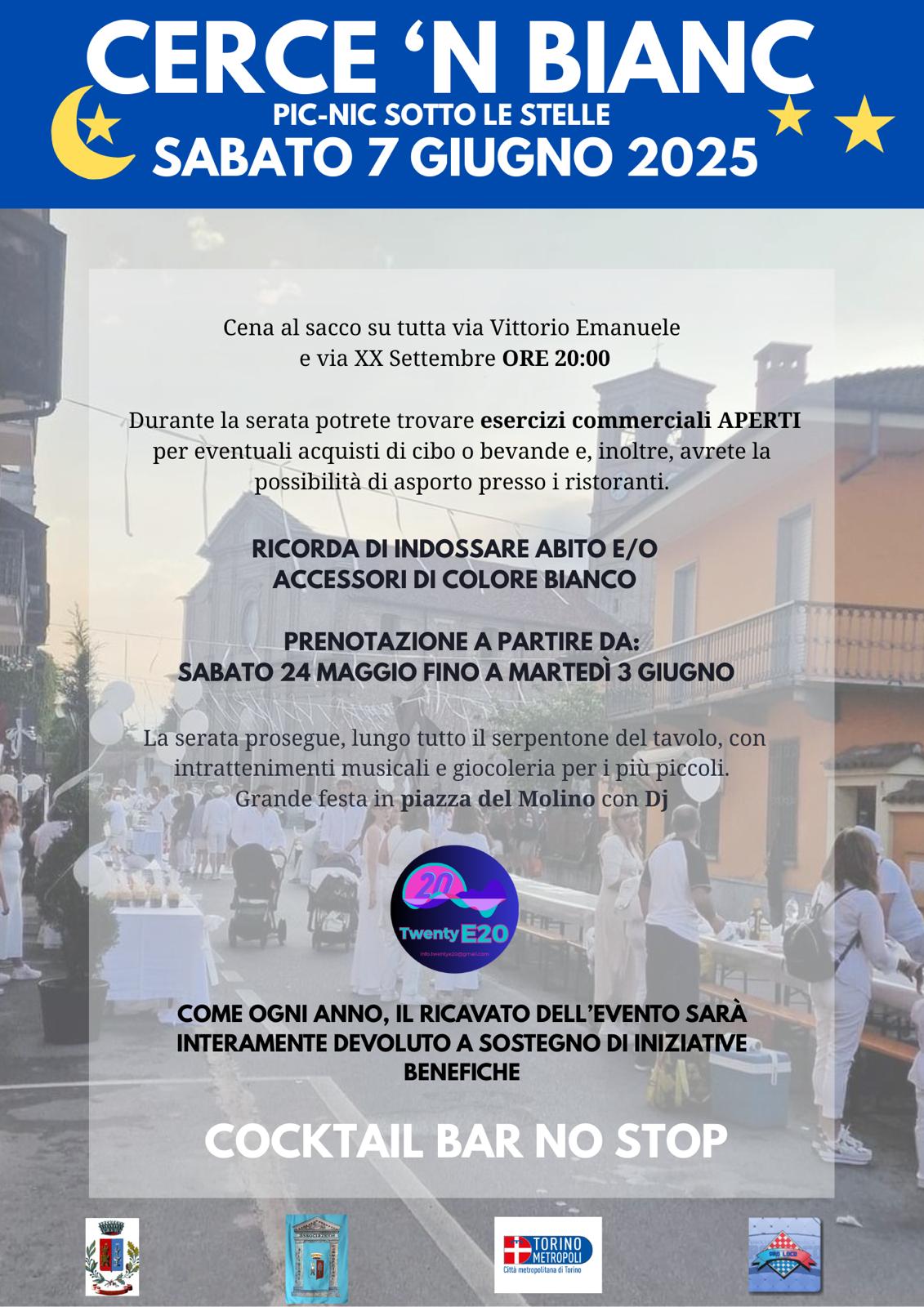Cercenasco si colora di bianco per l'atteso evento "Cerce 'n Bianc - Pic-nic sotto le stelle", in programma sabato 7 giugno.
