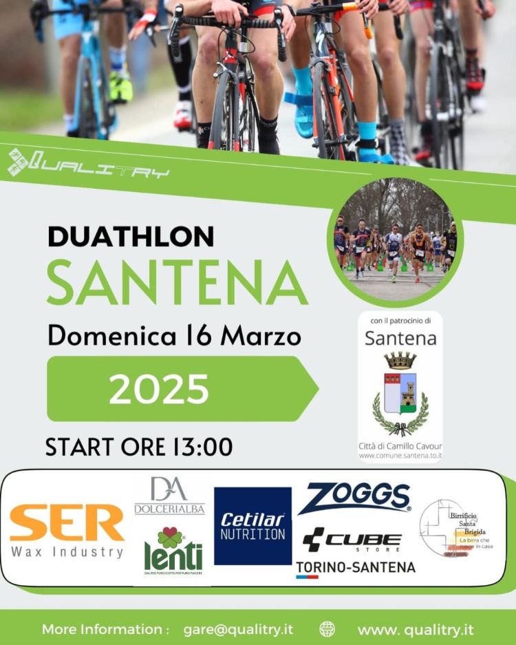 Tutte le informazioni sul Duathlon Sprint Città di Santena sono reperibili nel sito Internet www.qualitry.it