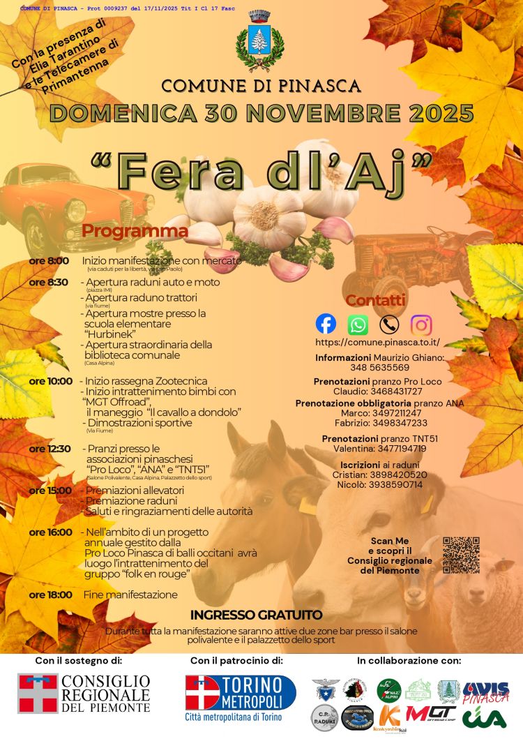 Domenica 30 novembre a Pinasca è tempo di “Fera dl'Aj”