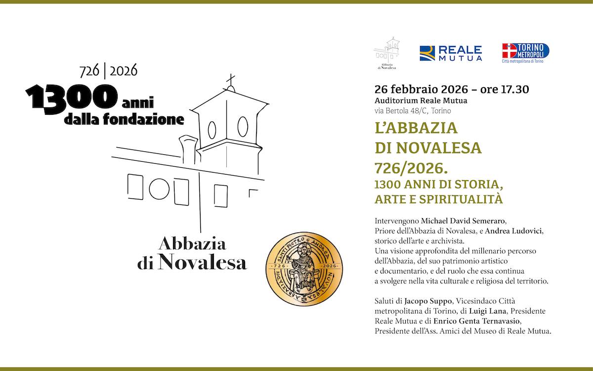 Per chi è interessato ad approfondire la storia ultramillenaria e il richiamo spirituale dell’Abbazia di Novalesa, l’appuntamento da non mancare è per giovedi 26 febbraio alle 17,30 nell’auditorium della Reale Mutua, in via Bertola 48/c a Torino. Padre Michael David Semeraro, priore dell’Abbazia novalicense, proporrà insieme allo storico dell’arte e archivista Andrea Ludovici una visione approfondita delle vicende del complesso abbaziale, del suo patrimonio artistico e documentario e del ruolo che ha svolto e continua a svolgere nella vita culturale e religiosa del territorio.