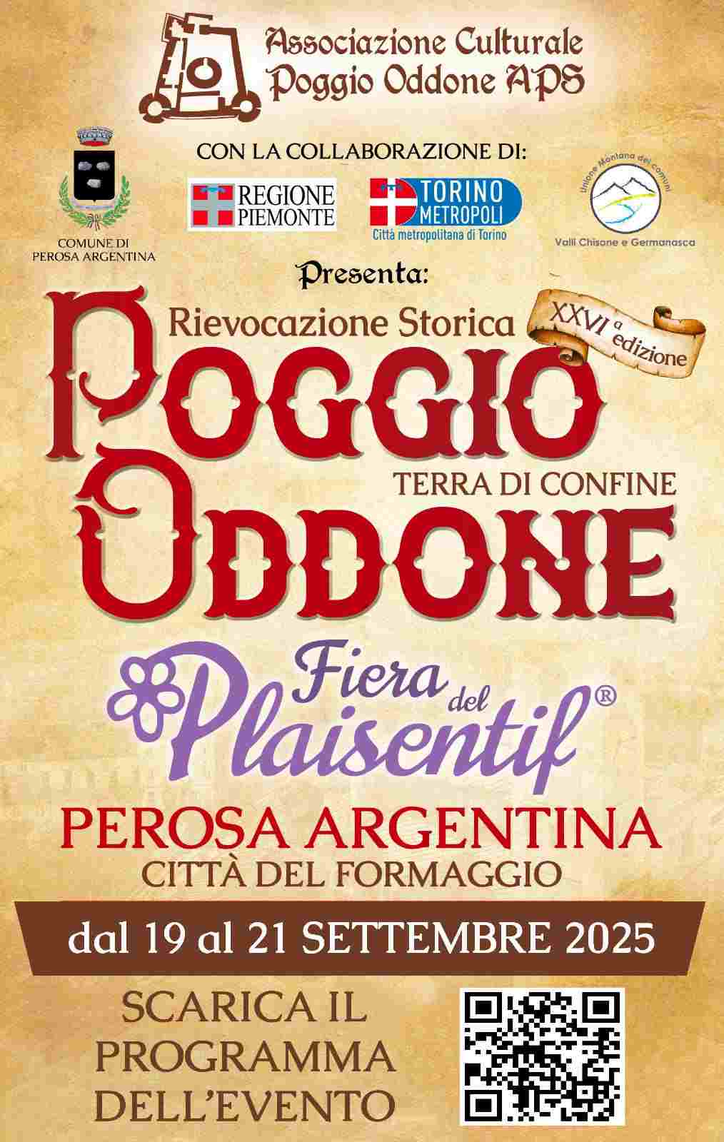 Quest’anno la Fiera del Plaisentif e la rievocazione storica “Poggio Oddone: Terra di Confine” sono in programma da venerdì 19 a domenica 21 settembre. Tra i momenti più significativi del programma di quest’anno figurano il convegno storico che si terrà alle 16 di sabato 20 settembre nella palestra della scuola primaria di Perosa Argentina, la Messa in costume nella chiesa parrocchiale alle 9 di domenica 21 e il successivo corteo storico, la presentazione dei gruppi storici, degli sbandieratori, dei musici e degli arcieri partecipanti, la consegna delle benemerenze civiche e del premio ai produttori intitolato alla memoria di Ivano Challier a Villa Willy, la degustazione guidata del Plaisentif alle 11,30, i giochi e i laboratori per i bambini, le dimostrazioni con i cani addestrati dall’associazione Argo Ucs di Caselle Torinese. L’ospite d’onore della giornata sarà Michela Carbone, che ha vinto il Campionato Mondiale della Pizza con una ricetta che comprende il Plaisentif e la Salsiccia di Bra. La manifestazione si concluderà nel pomeriggio con l’evento “Il più votato del Reame”, in cui una giuria popolare voterà il migliore Plaisentif presentato in fiera. La fiera è un’immersione completa nelle tradizioni e nei sapori locali, grazie alle bancarelle dedicate ai prodotti agroalimentari e artigianali. In Val Chisone i margari producono da secoli il Plaisentif, ma questa vera e propria rarità ha rischiato di scomparire ed è stata salvata grazie a un progetto di riscoperta e valorizzazione dell'allora Comunità Montana Valli Chisone e Germanasca e del Comune di Perosa Argentina, sostenuto dall'Assessorato all'Agricoltura e Montagna dell'allora Provincia di Torino. Oggi se ne producono ogni anno poche migliaia di forme, confezionate con latte crudo intero, stagionate per una settantina di giorni, numerate e marchiate a fuoco. L'allora Provincia nel 2009 inserì il Plaisentif nel proprio Paniere dei prodotti tipici, mentre l'anno successivo si costituì l'associazione dei produttori. Tra i protagonisti del progetto di riscoperta e valorizzazione vi fu uno dei margari che negli anni '90 tramandavano ancora l'antica sapienza casearia, il compianto Ivano Challier, allevatore e produttore nella frazione Balboutet del Comune di Usseaux, padre dell’attuale presidente dell’associazione dei produttori. Fu con la fondamentale collaborazione del Baffo (così lo chiamavano compaesani e valligiani) che venne stilato il disciplinare di produzione, che prevede che il latte utilizzato per produrre le forme sia solo quello munto quando le mucche si nutrono del fieno e delle viole che fioriscono nel mese di giugno. A garantire ai consumatori la qualità del Plaisentif sono il marchio registrato, che è custodito in una teca posta nell'ufficio del Sindaco di Perosa, la rigorosa scelta delle forme che meritano di essere marchiate a caldo dagli esperti del Consorzio di formazione Agenform di Moretta (Cuneo) e la stagionatura per 70 giorni in locali idonei. La selezione e la marchiatura avvengono presso le aziende dei margari. Le forme che possono fregiarsi del marchio riportano impressi a caldo anche il nome dell'azienda produttrice e le date di caseificazione e di inizio della stagionatura. Visto che, se si parla di Plaisentif, è buona norma prenotarlo per tempo, il consiglio è di contattare uno dei produttori indicati nell’elenco pubblicato nel sito dell’associazione Poggio Oddone alla pagina