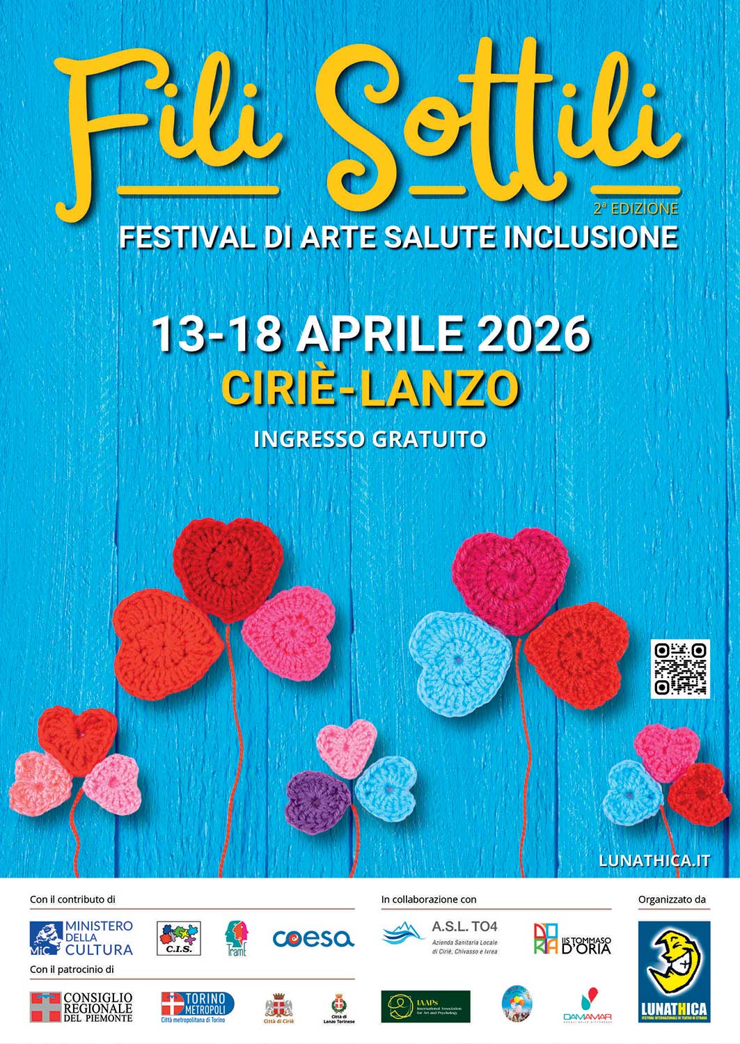 Dal 13 al 18 aprile nei Comuni di Ciriè e Lanzo Torinese torna “Fili sottili - Festival di Arte, Salute e Inclusione”. Un appuntamento innovativo a cura dell’associazione culturale I Lunatici giunto alla seconda edizione e nato per condividere esperienze artistiche e di teatro sociale, ma soprattutto un’occasione per riflettere insieme sui temi della salute mentale e della disabilità e su quali attività e azioni possano rendere la nostra società più inclusiva; temi a cui Lunathica (che coordina i diversi appuntamenti che compongono questo ricco cartellone di eventi) ha sempre prestato una particolare attenzione all’interno della sua programmazione.