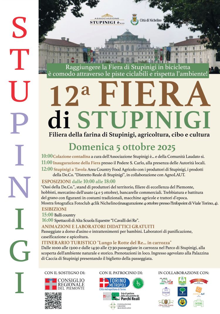 Domenica 5 nelle cascine settecentesche dell’affascinante e storica frazione della Città di Nichelino torna la Fiera di Stupinigi, che è patrocinata dalla Città metropolitana di Torino e vanta radici secolari nei rituali propiziatori della caccia e del mondo contadino. L’inaugurazione è in programma alle 11 al Podere San Carlo, preceduta alle 10 dalla colazione contadina proposta dall’associazione “Stupinigi è…” e dalla Comunità Laudato sì. All’inaugurazione parteciperanno gli aderenti al protocollo d’intesa per la valorizzazione del Parco di Stupinigi, che coinvolge i Comuni di Nichelino, Beinasco, Candiolo, None, Orbassano e Vinovo. La cerimonia ufficiale sarà anche l’occasione per presentare la pasta preparata con il grano della Filiera della Farina di Stupinigi. Sarà possibile pranzare con i prodotti locali in viale Torino di fronte al podere San Carlo, al podere Sant’Umberto, al ristorante Sabaudia, alla Panacea Social Farm e al Caffè Villa Reale. In viale Torino dalle 10 alle 18 i visitatori troveranno stand istituzionali e di divulgazione ambientale, stand di piccoli e medi produttori del territorio e delle filiere di eccellenza del Piemonte, gli hobbisti, il mercatino dell'usato, i giochi in legno della tradizione,laboratori didattici per i bambini, esibizioni e antichi mestieri proposti da gruppi storici, animazioni musicali, dimostrazioni di battitura e trebbiatura del grano, spettacoli di danza country, esibizioni di alta scuola equestre e una mostra fotografica a cura del Fotoclub 4clik all'Infopoint di viale Torino 4. L’iniziativa "Lungo le rotte del Re...in carrozza" proporrà tra le 10 e le 13 e tra le 14,30 e le 17,30 passeggiate in carrozza nel Parco Naturale di Stupinigi, alla scoperta dell'ambiente naturale e faunistico, con la partenza dal Podere Sant’Umberto e prenotazione sul posto. Presentando il biglietto della passeggiata in carrozza, sarà possibile visitare la Palazzina di Caccia di Stupinigi con una tariffa agevolata.