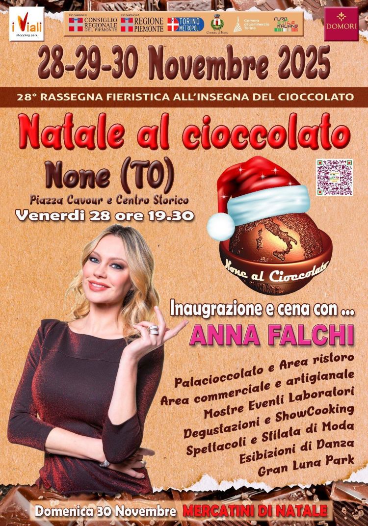 Tre giorni di gusto, tradizione, spettacoli e installazioni dedicate al “Cibo degli Dei” e alla magia del Natale: quella di None è una dolce tradizione e quest’anno l’appuntamento con l’evento “Natale al Cioccolato” è da venerdì 28 a domenica 30 novembre, come sempre con il patrocinio della Città metropolitana di Torino.