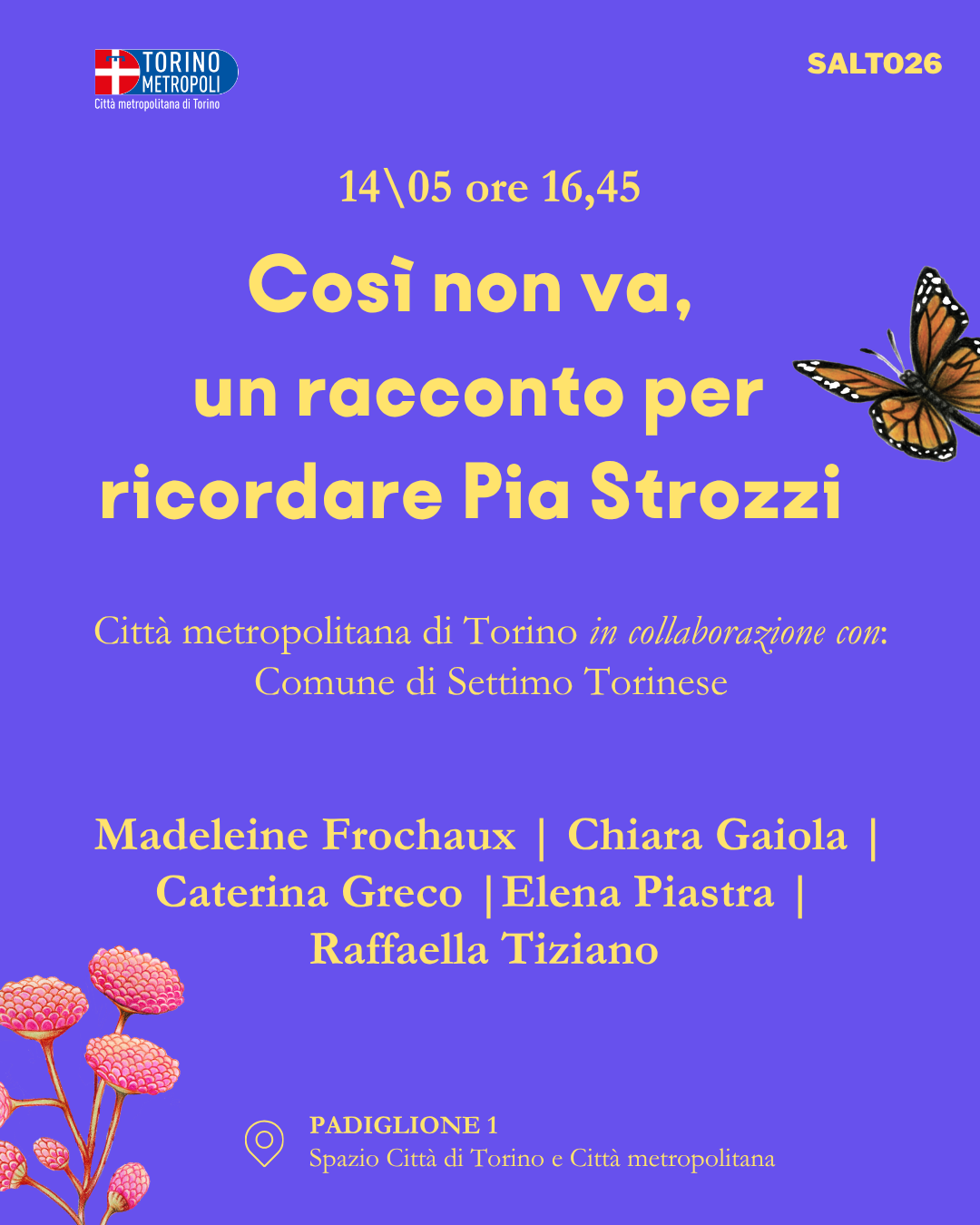 Giovedì 14 maggio - Così non va, un racconto per ricordare Pia Strozzi (ore 16:45)