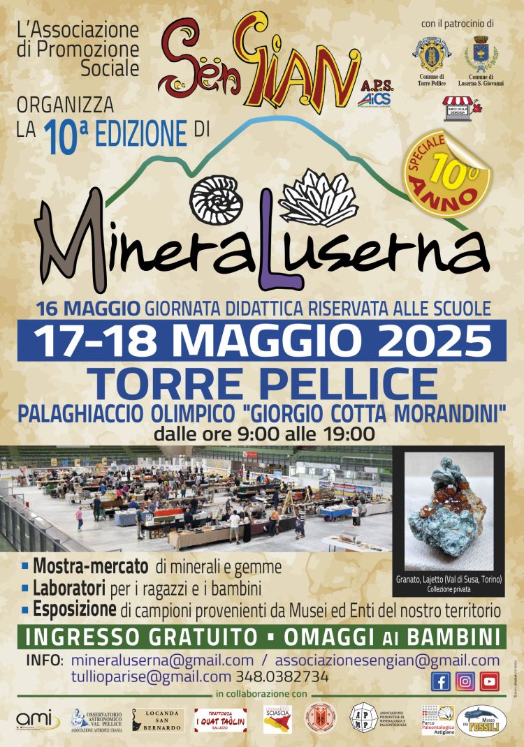 Per gli appassionati di mineralogia, collezionisti e professionisti del settore, sabato 17 e domenica 18 maggio l’appuntamento da non mancare è al palaghiaccio Cotta Morandini di Torre Pellice, con la decima edizione di MineraLuserna, la rassegna mineralogica organizzata dall’associazione di promozione culturale Sën Gian e dedicata alla scoperta e alla valorizzazione delle pietre, sin dall’inizio patrocinata dalla Città metropolitana di Torino. La mostra è visitabile gratuitamente ed è aperta a tutti coloro che desiderano esplorare il mondo dei minerali, incontrando collezionisti provenienti da tutto il Nord Italia e dall’estero. Oltre alla mostra-mercato di minerali e gemme, sono in programma laboratori per ragazzi e bambini e un’esposizione di campioni provenienti da musei ed Enti del territorio piemontese.