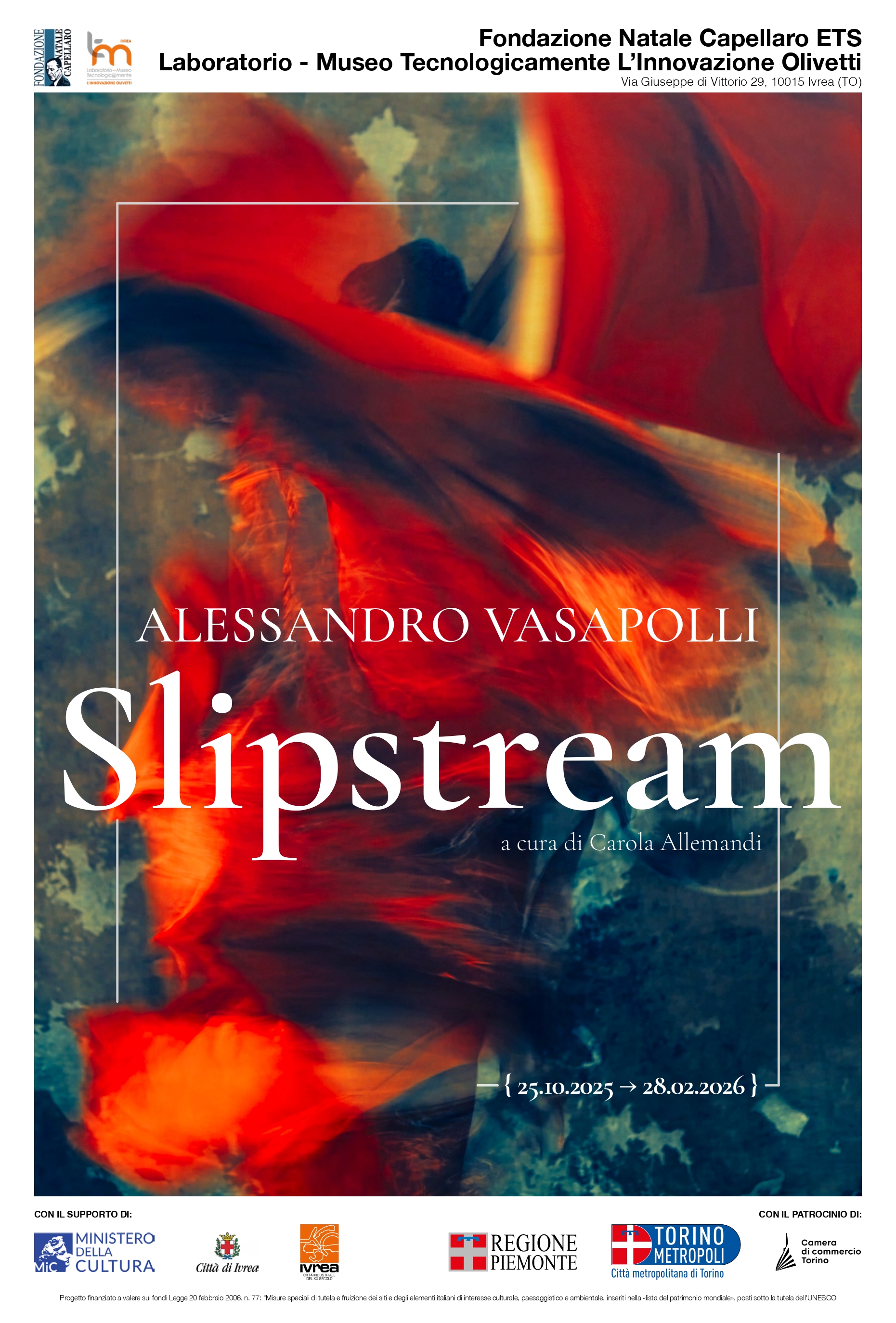 Sabato 25 ottobre inaugura al Laboratorio-Museo Tecnologicamente di Ivrea, Slipstream, la prima mostra antologica dell’artista Alessandro Vasapolli.