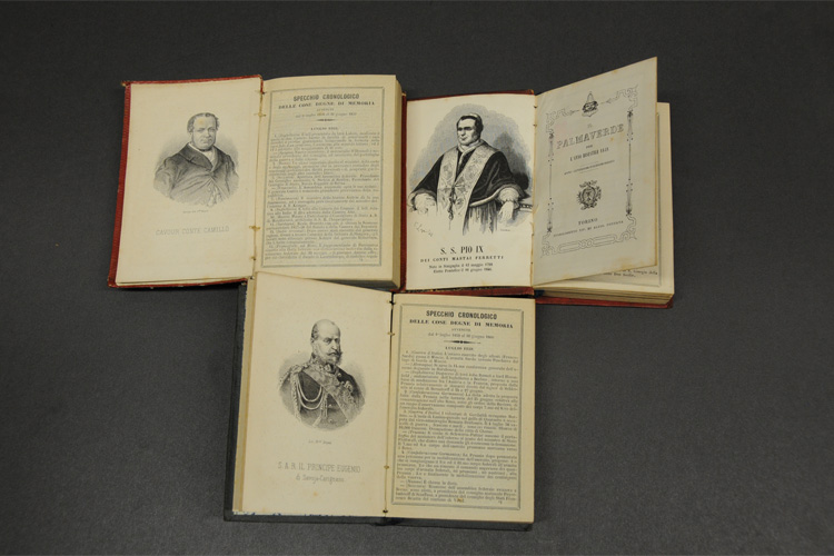 A breve distanza da Biella, in una fastosa scenografia paesaggistica a 1200 metri di quota, si erge il Sacro Monte di Oropa, che con la sua Madonna nera è considerato il più importante sito devozionale mariano della zona alpina. Eretto a partire dalla seconda decade del diciassettesimo secolo, è composto da dodici cappelle dedicate alla vita della Vergine. La biblioteca conserva un raro in-folio del 1830, Il Santuario di Nostra Signora d'Oropa, contenente 12 litografie di Enrico Gonin. Da segnalare anche i Cenni storico-artistici intorno al Santuario di N. Donna d'Oropa di Maurizio Marocco (Torino 1866), dedicato "Ai candidi e discreti Lettori".
