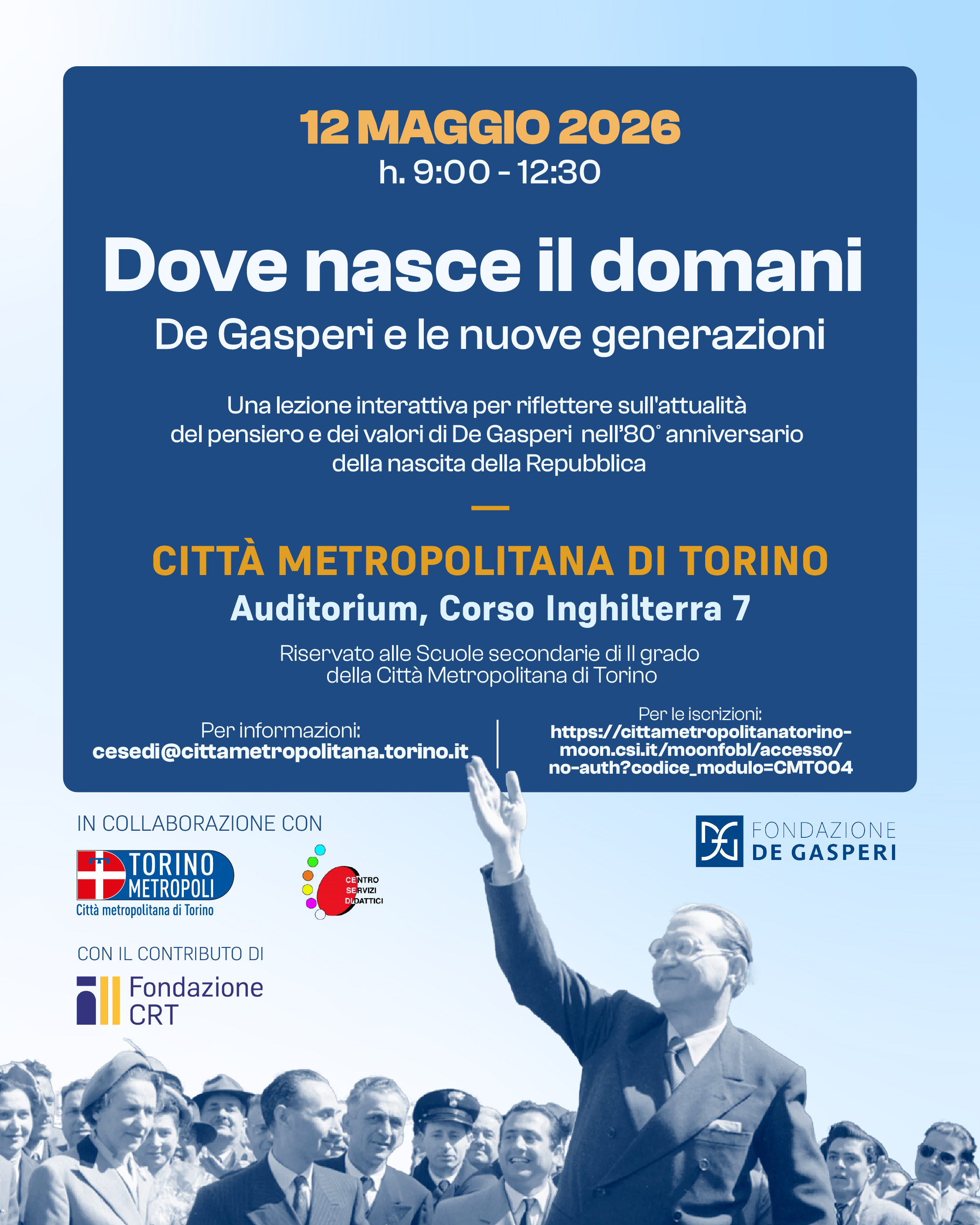 12 maggio - Dove nasce il domani De Gasperi e le nuove generazioni